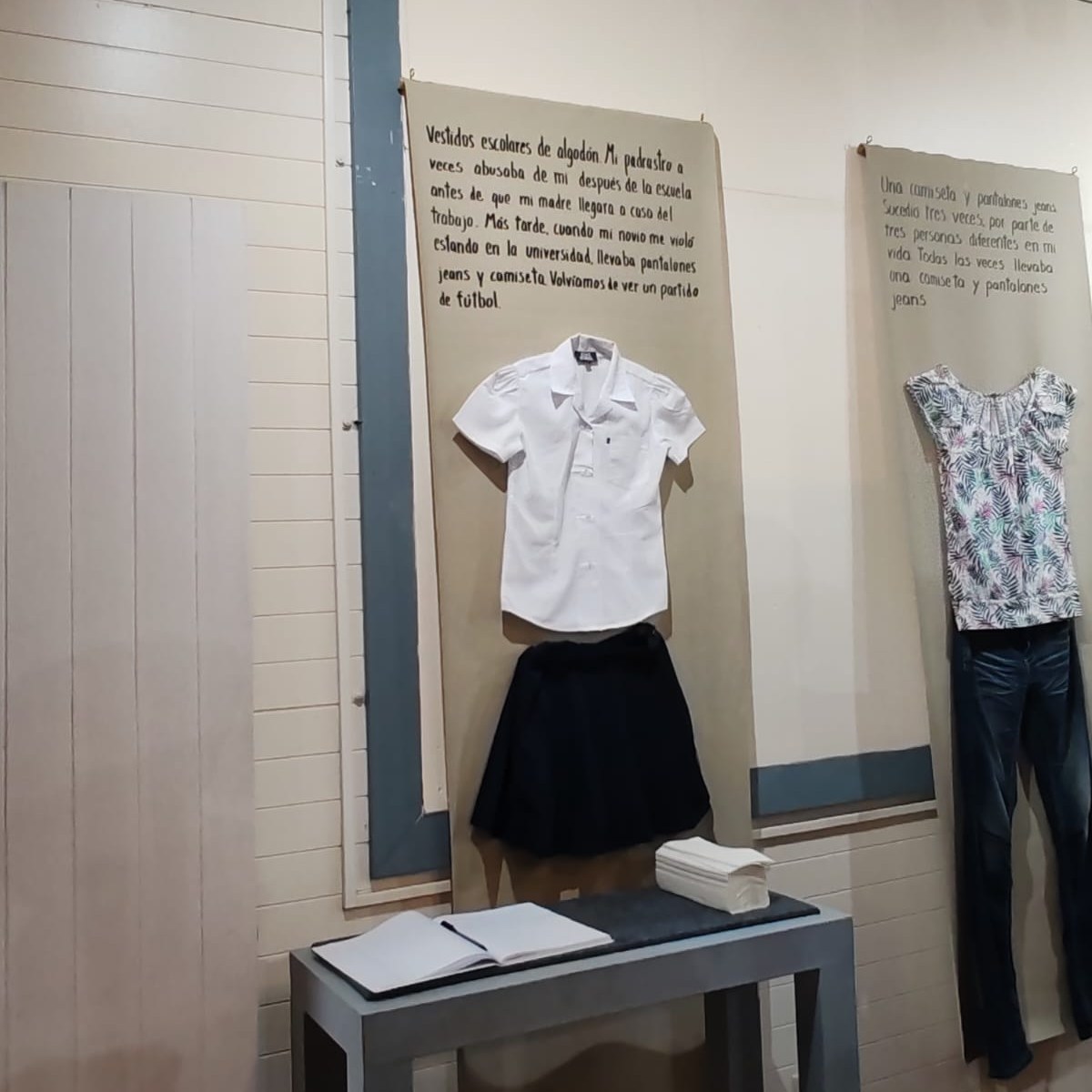 Durante la jornada se compartió con estudiantes del curso Seminario de Realidad Nacional y se reflexionó en torno a la exposición de arte sobreviviente “¿Qué llevabas puesto?”, instalada en el Museo de la Sede.