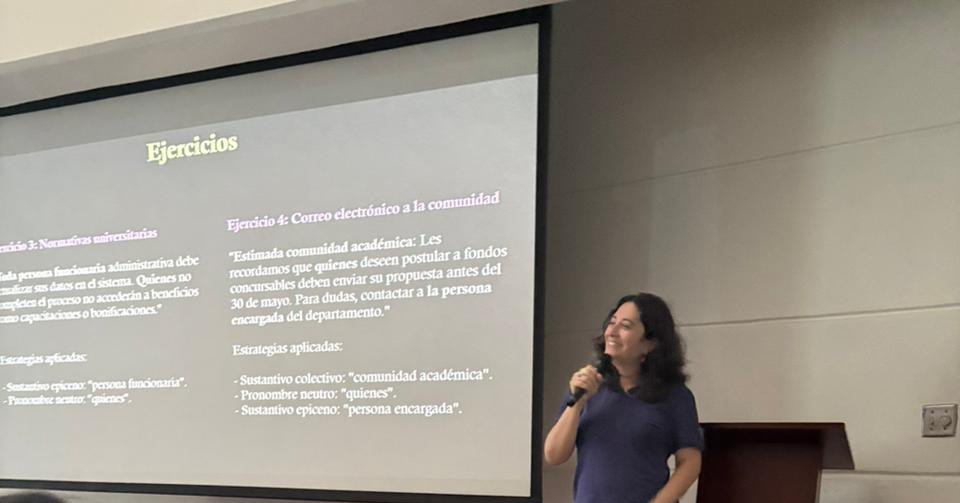 Durante la actividad se abordaron contenidos relacionados con el uso del lenguaje incluyente de género, los conceptos de identidad de género y orientación sexual, así como la normativa universitaria que garantiza a la UCR como un espacio libre de toda forma de discriminación.